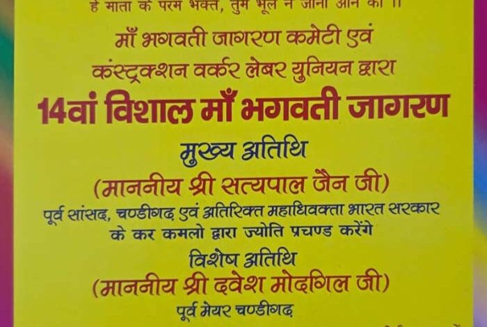 चंडीगढ़ में 14वां विशाल माँ भगवती जागरण 15 अप्रैल को