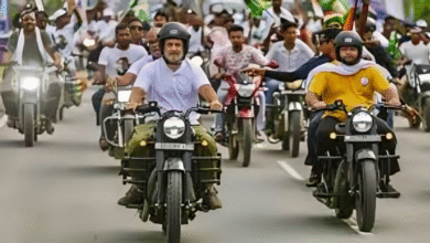 राहुल गांधी ने चलाई बुलेट वोटर अधिकार यात्रा में , रुक कर पी चाय ढाबे पर