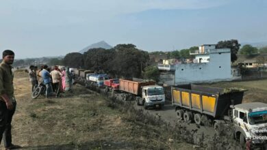 एनएच के खस्ताहाल और प्रदूषण को लेकर गोरबी-बरगवां मार्ग पर महिलाओं ने लगाया जाम