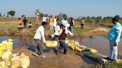 सिंगरौली-जल संचय अभियान अन्तर्गत विकासखंड बैढ़न सेक्टर माडा के पड़री राजा ग्राम में मेड़रिया नाला में 100 बोरियों का बोरी…