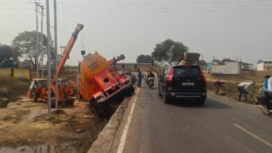 खोखरी गांव में पुल के पास पलटा बल्कर, टला बड़ा हादसा