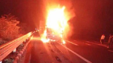 अलवर में दिल्ली–मुंबई एक्सप्रेस-वे पर भीषण हादसा: पिकअप में आग लगने से 3 की मौत, एक गंभीर