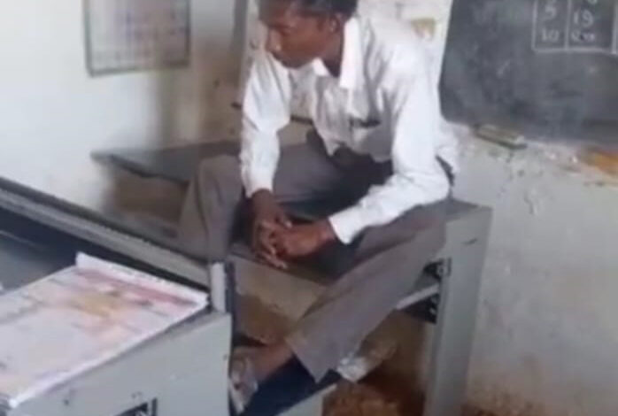 सिंगरौली। जिले के चितरंगी क्षेत्र स्थित प्राथमिक पाठशाला बेलौही से एक वीडियो सामने आने के बाद विवाद खड़ा हो गया है। वायरल वीडियो में एक शिक्षक कथित तौर पर नशे की हालत में बच्चों की मेज पर बैठे दिखाई दे रहे हैं। बताया जा रहा है कि वीडियो शनिवार दोपहर का है, जिसमें स्कूल के खर्च और बर्तनों की खरीद को लेकर विवाद होता नजर आ रहा है।