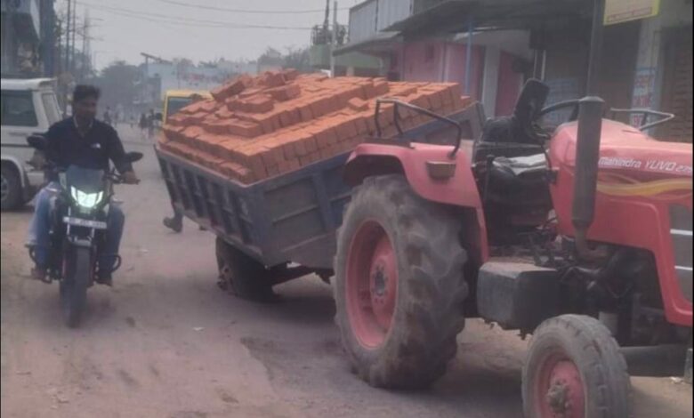 ननि के वार्ड 40 में धंस गया ड्रेेनेज, फंसा ईंट लोड ट्रेक्टर