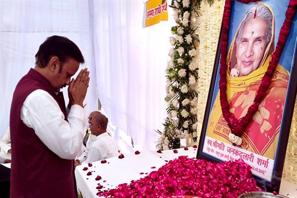 उप मुख्यमंत्री श्री शुक्ल ने स्वर्गीय श्रीमती जनकदुलारी शर्मा को अर्पित की श्रद्धांजलि