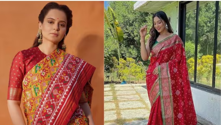 कंगना की साड़ी में गुजरात की ऐतिहासिक पाटोला कला की पहचान—डबल इकट बुनाई—साफ नजर आई। गहरे लाल रंग पर पीले शेड का संतुलन और सटीक ज्यामितीय पैटर्न ने पूरे लुक को राजसी गरिमा दी। इसके साथ उन्होंने लाल रंग का ब्लाउज पहना, जिसकी आस्तीनों पर हल्का सुनहरा काम था। राजनीतिक मंच की गंभीरता और सिनेमा की भव्यता का संतुलन उनके लुक की खासियत रहा।