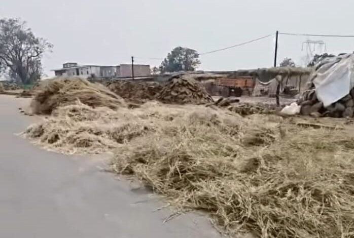 एनएच-39 देवसर रोड बना ‘खलिहान’, सड़क पर सूख रहा अनाज; हादसे का खतरा बढ़ा