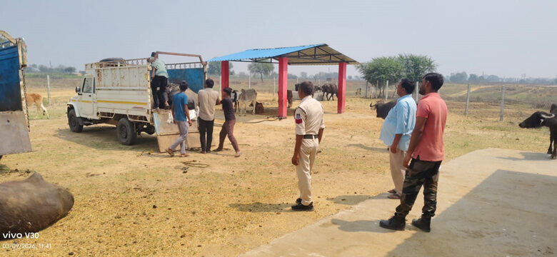 पशु तस्करी के खिलाफ कोतवाली पुलिस की कार्रवाई, 13 भैंस और दो पिकअप वाहन जप्त