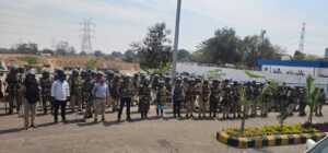 मौके पर पहुंचे अधिकारी, भारी पुलिस बल तैनात