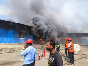 श्रमिक की मौत पर बंधौरा पावर प्लांट में बवाल: मजदूरों ने ऑफिस में लगाई आग, कई गाड़ियों में तोड़फोड़; पुलिस से भी धक्का-मुक्की