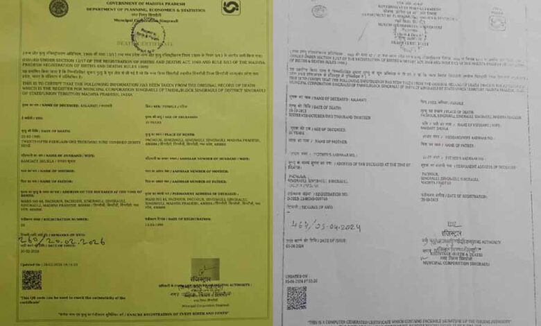 सिंगरौली। मध्य प्रदेश के सिंगरौली जिले से एक चौंकाने वाला मामला सामने आया है, जहां एक महिला की मौत सरकारी रिकॉर्ड में दो बार दर्ज कर दी गई। मामले के पीछे जमीन हड़पने की साजिश की आशंका जताई जा रही है।