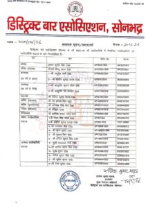 डि बा ए सोनभद्र क़े एल्डर कमेटी अध्यक्ष श्रीनाथ सिंह एड व मुख्य चुनाव अधिकारी राजेश कुमार यादव एड ने सत्र 25-26 की कार्यकारिणी घोषित की