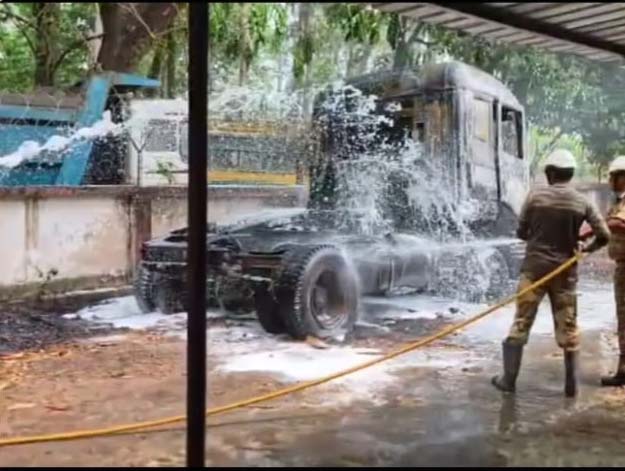 नवानगर थाने के पास खड़े ट्रक में लगी भीषण आग, जलकर हुआ खाक; 5 दमकल गाड़ियों ने पाया काबू
