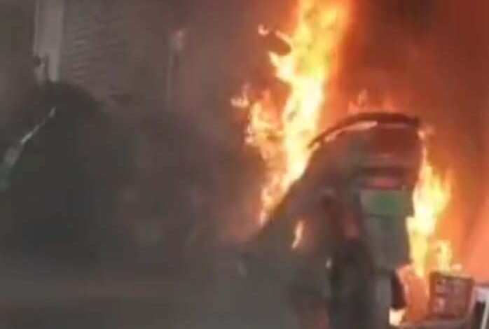 चार्जिंग के दौरान ई-बाइक में लगी भीषण आग, थाने के सामने धू-धू कर जली स्कूटी