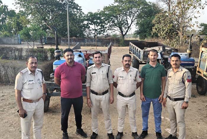 जानकारी के अनुसार, 11 अप्रैल 2026 को पुलिस को मुखबिर से सूचना मिली थी कि बिना नंबर के दो ट्रैक्टर-ट्रॉली मयार नदी से अवैध रेत लोड कर बिक्री के लिए ग्राम काम की ओर आ रहे हैं। सूचना मिलते ही चौकी सासन प्रभारी उपनिरीक्षक संदीप नामदेव के नेतृत्व में पुलिस टीम ने ग्राम काम में मयार नदी मार्ग पर घेराबंदी की।