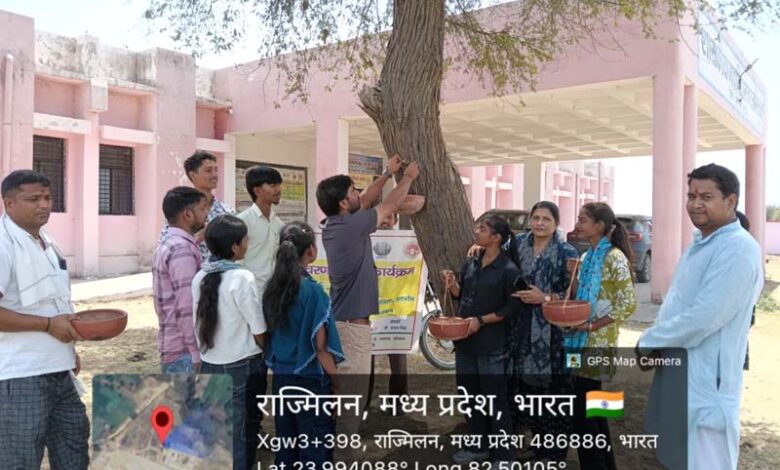 रजमिलान महाविद्यालय में अनूठी पहल: पक्षियों के लिए रखे सकोरे, दिया संरक्षण का संदेश
