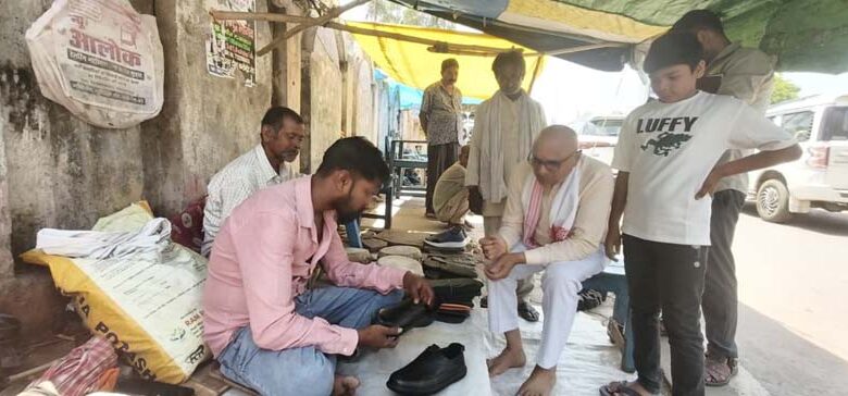 सड़क किनारे मोची से जूते ठीक करवाते नजर आए सांसद डॉ. राजेश मिश्रा