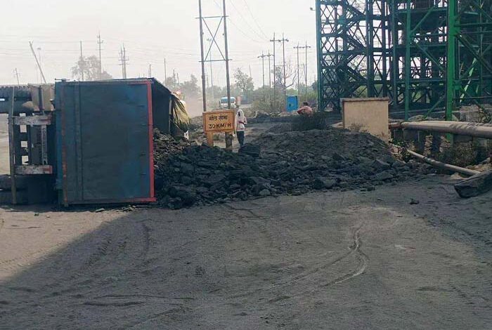 एनसीएल निगाही परियोजना में बड़ा हादसा, कोयला लोड गाड़ी पलटी