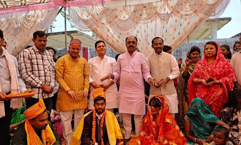 मुख्यमंत्री कन्या विवाह/निकाह योजना के तहत बिलौजी में सामूहिक विवाह, जनप्रतिनिधियों ने नवदंपत्तियों को दिया आशीर्वाद