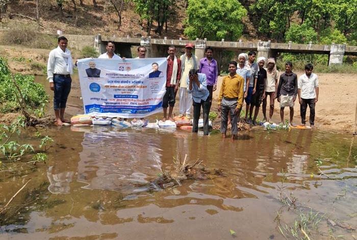 जल गंगा संवर्धन अभियान की अनूठी पहल से ग्रामीणों को जल बचाने की बोरी बंधान से दी प्रेरणा