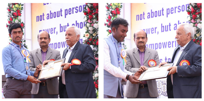 ट्रांसमिशन लाइन मेंटेनेंस स्टॉफ अर्जुन कारले एवं आउटसोर्स कर्मी शिवपाल निकुम पुरस्कृत