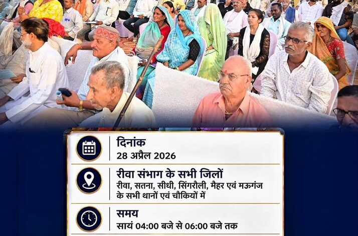 जानकारी के अनुसार, 28 अप्रैल 2026 (मंगलवार) को शाम 4 बजे से 6 बजे तक रीवा जोन के 6 जिलों के 77 थानों और 64 चौकियों में जन चौपाल आयोजित होगी। वहीं, जिले के 12 थानों और 13 चौकियों में भी एक साथ यह कार्यक्रम संचालित किया जाएगा।
