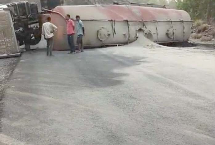 नेशनल हाईवे-39 फिर जाम: हथिओदरा में कैप्सूल वल्कर पलटा, यातायात बाधित