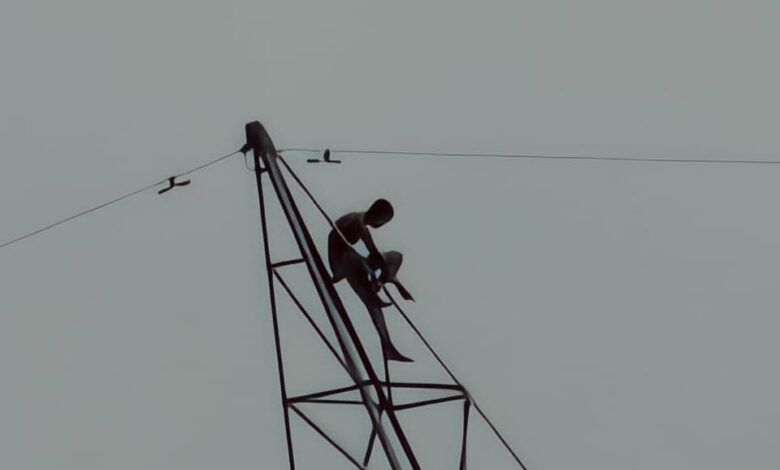 हाई वोल्टेज खम्भे मे पर चढ़कर युवक कर था हाई वोल्टेज ड्रामा, पुलिस ने सूझबूझ से नीचे उतारा…