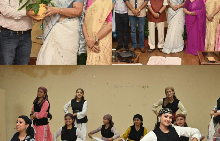 कार्यक्रम की शुरुआत संगीत विभाग की छात्राओं द्वारा प्रस्तुत भावपूर्ण “जय माँ शारदा भवानी” से हुई, माँ सरस्वती के आशीर्वाद से कार्यक्रम का शुभारंभ हुआ। इसके पश्चात विद्यार्थियों की प्रभावशाली कवितापाठ और ऊर्जावान नाटी नृत्य प्रस्तुति ने वातावरण को जीवंत और कलात्मक बना दिया।