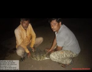 जिसे देख ग्रामीणों में दहशत का माहौल था जिसकी सूचना सोन घड़ियाल अभ्यारण्य के कर्मचारियों को दी गई सूचना उपरांत मौके पर पहुंच कर