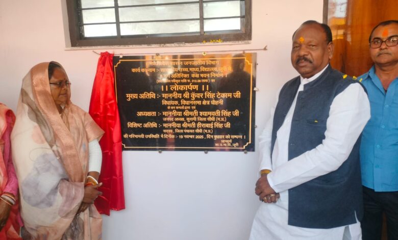 सीधी जिले के कुसमी विकासखंड अंतर्गत जरी हायर सेकंडरी स्कूल नवीन भवन लागत 310लाख का लोकार्पण क्षेत्रीय विधायक कुंवर सिंह टेकाम सिंह के मुख्य अतिथि, विशिष्ट अतिथि जिला पंचायत सदस्य हीराबाई सिंह एवं जनपद सदस्य भानू प्रताप सिंह एवं जूरी सरपंच अनीता सिंह की अध्यक्षता में संपन्न हुआ। कार्यक्रम में विधायक कुंवर सिंह टेकाम के द्वारा फीता काटकर जूरी विद्यालय का लोकार्पण किया गया। जहां नेताओं समेत खण्ड स्तरीय अधिकारी कर्मचारी काफी संख्या में उपस्थित थे।