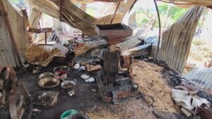 अरहर की दाल एक किन्टल, गेहूं 7 क्विंटल, एक फ्रीजर एक फ्रिज,, तीन फर्राटा पंखा, आटा पीसने वाली मशीन एक मोटर सहित, एवं तेल वाली मशीन के साथ हीं रखा हुआ किराना दुकान की सामग्री चलकर खाक होगी इस दौरान छत डालने की व्यवस्था बनाने के लिए डेढ़ लाख रुपए भी नगद रखा हुआं था वह भी जलकर खाक हो गया।