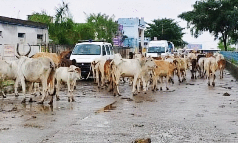 सैकड़ों मवेशियों का कब्जा ट्रामा सेंटर के सामने वाले सड़क में