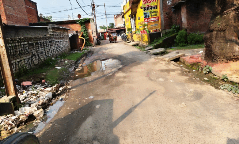 नालियां भी गायब ताली बस्ती मार्ग की सड़क गड्ढों में तब्दील