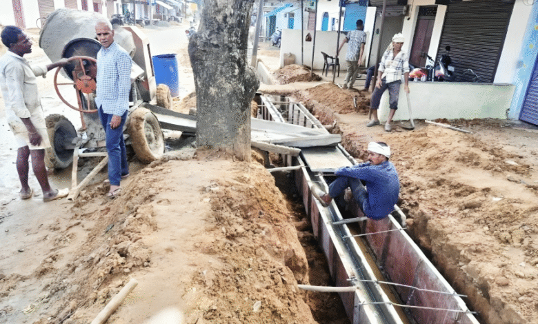 ग्रामीणों ने लगाया आरोप गुणवत्ता विहीन नाली निर्माण कराने का
