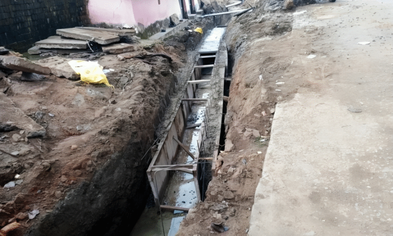नाली का निर्माण कार्य प्राक्कलन के अनुरूप नही कराया जा रहा है