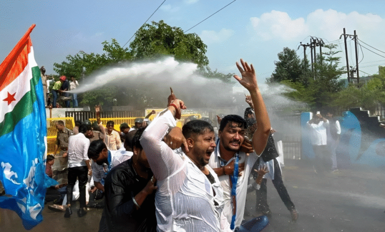 पुलिस ने एनएसयूआई पर वाटर कैनन का किया इस्तेमाल