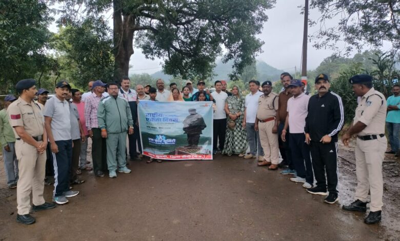 लौह पुरुष सरदार वल्लभभाई पटेल की 150वीं जयंती के अवसर पर शुक्रवार को पूरे प्रदेश में पुलिसकर्मियों द्वारा’रन फॉर यूनिटी’ में हिस्सा लेंने के आदेश शासन स्तर से दिये गये थे। जिसके परिपालन में और देश की एकता, अखंडता एवं सुरक्षा को मजबूत करने के देश के पहले गृह मंत्री सरदार वल्लभ भाई पटेल की स्मृति में यह कार्यक्रम थाना प्रभारी कुसमी अरूणा द्विवेदी के नेतृत्व में रन फांर यूनिटी के तहत कुसमी मे आयोजित किया गया।जहां मुख्य अतिथि वातौर जिला पंचायत सदस्य हीराबाई सिंह कुसमी तहसीलदार नारायण सिंह,सीईओ जनपद पंचायत ज्ञानेंद्र मिश्रा बीईओ रविचंद्र दास सीएम राइज प्राचार्य राजेश पांण्डेय बीएमओ डॉ.सुधीर गुप्ता ,डॉ.आर.बी.सिंह डॉ.सुप्रिया सिंह , मड़वास राजेंद्र राजपूत पोड़ी चौकी प्रभारी डी.के.रावत एवं कुसमी खंड अधिकारियों के अगुवाई में कुसमी थाना से तहसील कुसमी तक दौड़ कार्यक्रम आयोजित किया गया।एवं सरदार वल्लभभाई पटेल के अमर रहे के नारे लगाये गये।जहां सैंकड़ों की संख्या में लोग दौड़ कार्यक्रम में शामिल हुये।