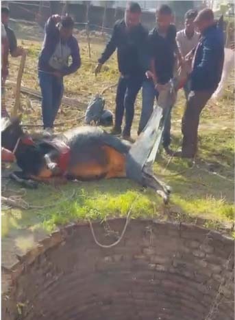 कुएँ में गिरी गाय, नवीन सिंह की बहादुरी से बची जान