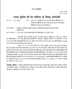 गढ़वा पुलिस की रेत माफिया के विरुद्ध की गई कार्रवाई
