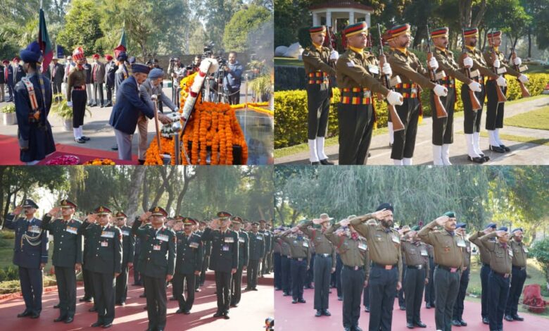 मनोज शर्मा,चंडीगढ़ । विजय दिवस के उपलक्ष्य में चंडीमंदिर स्थित वीर स्मृति पर एक गरिमामय पुष्पांजलि समारोह आयोजित किया गया। मुख्यालय पश्चिमी कमान के चीफ ऑफ स्टाफ लेफ्टिनेंट जनरल पुनीत आहूजा,एसएम, वीएसएम ने राष्ट्र की सेवा में सर्वोच्च बलिदान देने वाले वीर सैनिकों को श्रद्धांजलि अर्पित की।