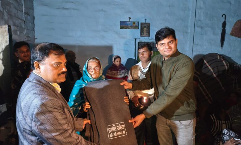 प्रगति संस्था द्वारा नववर्ष पर जरूरतमंदों को 200 कंबल वितरित