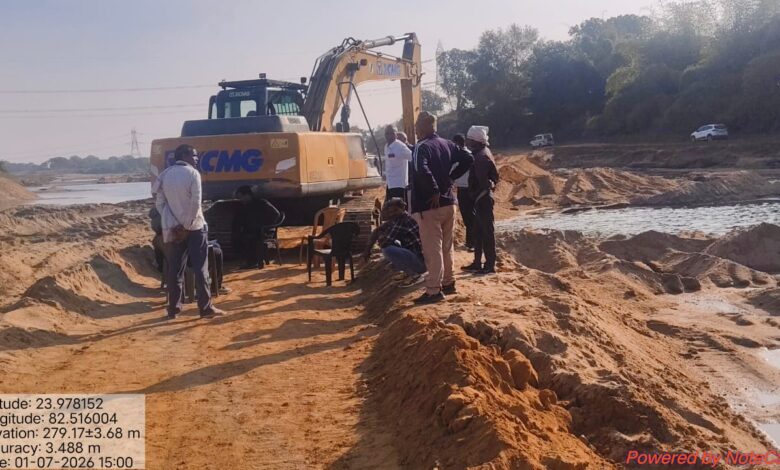 स्वीकृत क्षेत्र के बाहर रेत उत्खनन कार्य में लगी पोकलेन मशीन को किया गया जप्त