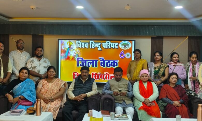 सिंगरौली-जिला मुख्यालय स्थित मिश्रा पॉलीक्लीनिक एवं नर्सिंग होम के नए सभागार में विश्व हिंदू परिषद की जिला स्तरीय बैठक का आयोजन किया गया। बैठक में संगठन की मजबूती, सामाजिक सरोकारों एवं आगामी कार्यक्रमों को लेकर विस्तृत विचार-विमर्श किया गया।