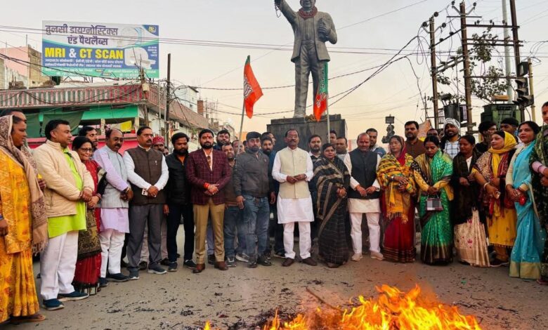 भाजपा ने फूंका कांग्रेस विधायक फूलसिंह बरैया का पुतला