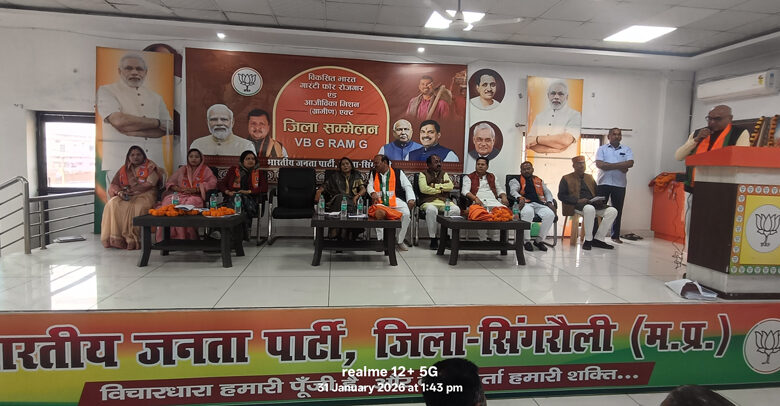 सिंगरौली।केंद्र सरकार की बहुउद्देशीय एवं रोजगार संवर्धन की दृष्टि से प्रारंभ की गई विकसित भारत गारंटी फॉर रोजगार एवं आजीविका मिशन ग्रामीण (जी-राम-जी) एक्ट को लेकर भारतीय जनता पार्टी सिंगरौली जिले की विशेष कार्यशाला आयोजित की गई। कार्यशाला में मुख्य अतिथि के रूप में ग्रामीण विकास एवं पंचायत राज राज्यमंत्री राधा सिंह उपस्थित रहीं, जबकि मुख्य वक्ता के रूप में लोकसभा सांसद डॉ. राजेश मिश्रा ने संबोधित किया। कार्यक्रम की अध्यक्षता जिलाध्यक्ष सुंदरलाल शाह ने की।