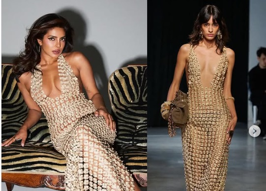 फोटोशूट के दौरान अभिनेत्री ने न्यूयॉर्क के प्रसिद्ध फैशन ब्रांड Bronx and Banco द्वारा डिजाइन किया गया गोल्ड नोमैड एम्बेलिश्ड मैक्सी गाउन पहना। यह गाउन गोल्ड और पर्ल डिजाइन से तैयार किया गया है, जिसमें डीप प्लंजिंग नेकलाइन और साइड स्लिट्स दी गई हैं। फैशन विशेषज्ञ इसे हाई लक्जरी और आधुनिक फैशन का शानदार उदाहरण मान रहे हैं।